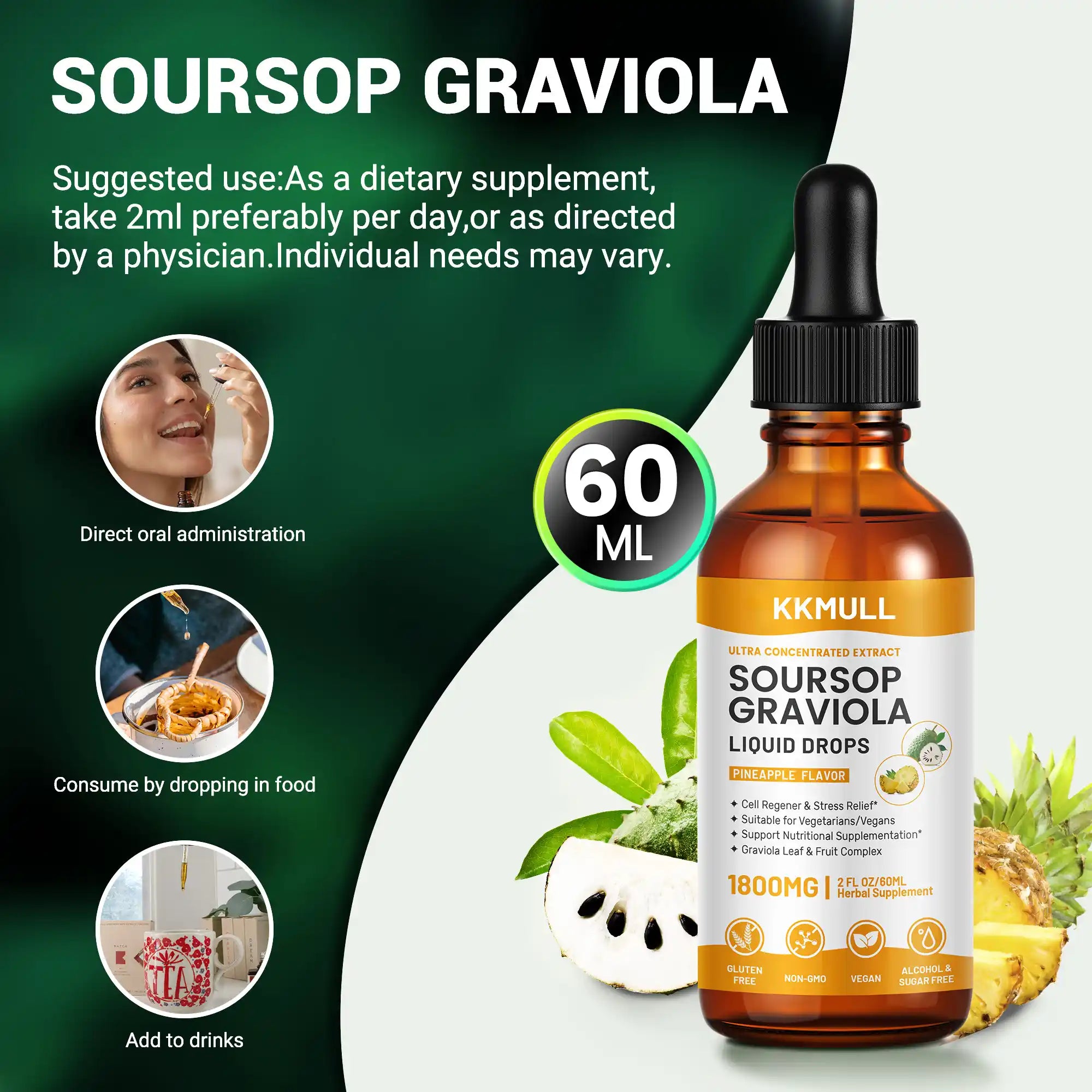 KKMULL Graviola Soursop Leaf Extract Liquid Natural sleep aid preparations, Pineapple Flavor, 2 Fl Oz